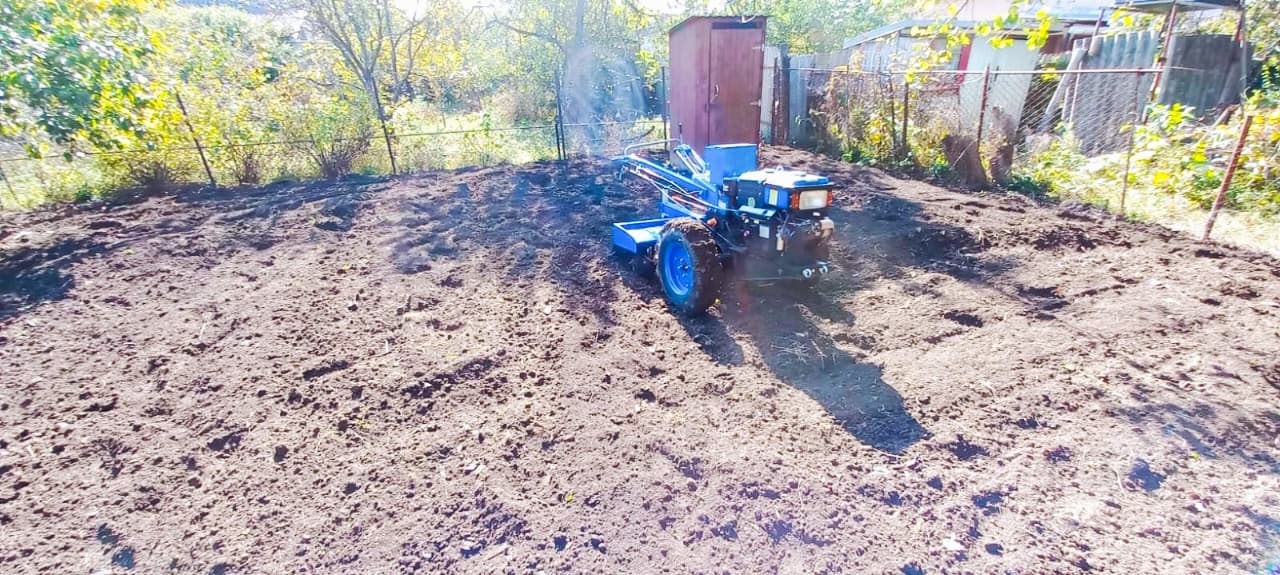вспашка земли мотоблоком