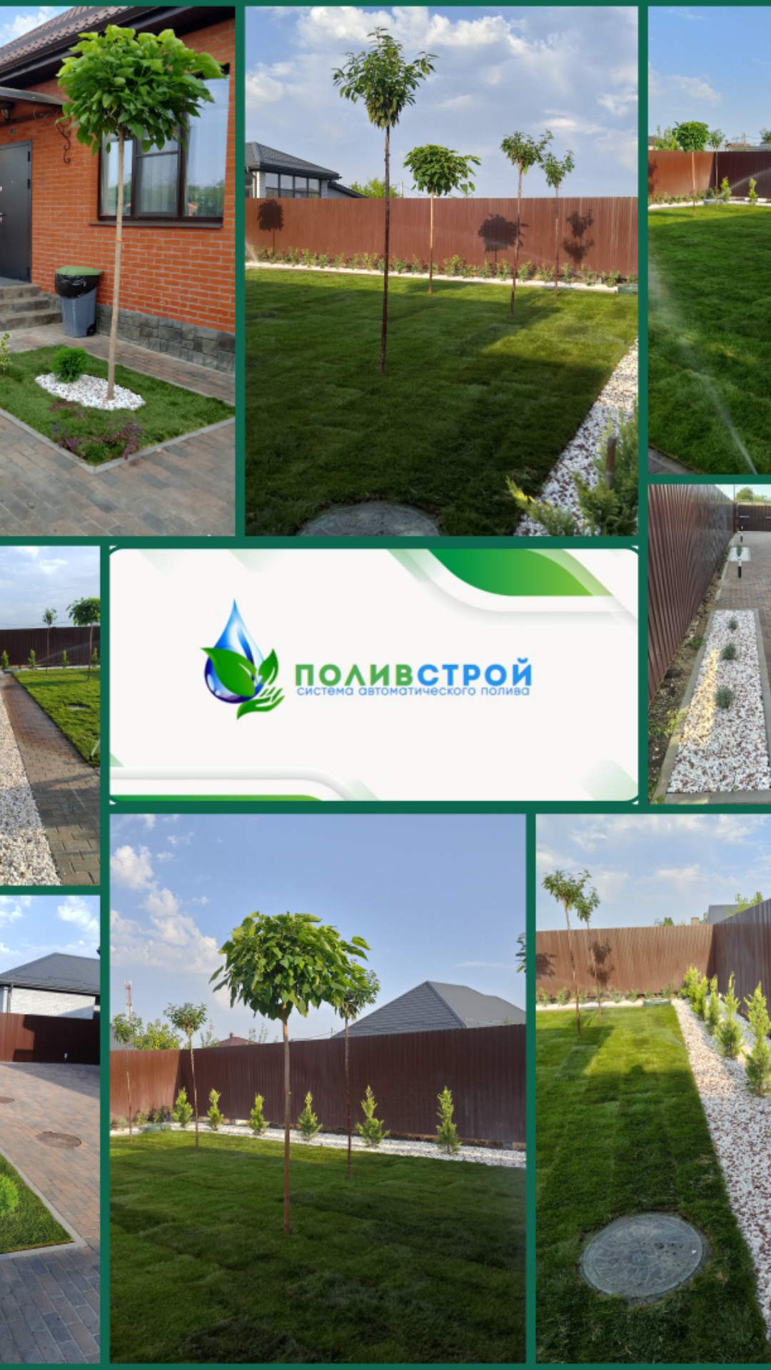 Озеленение территории, автоматический полив, рулонный газон